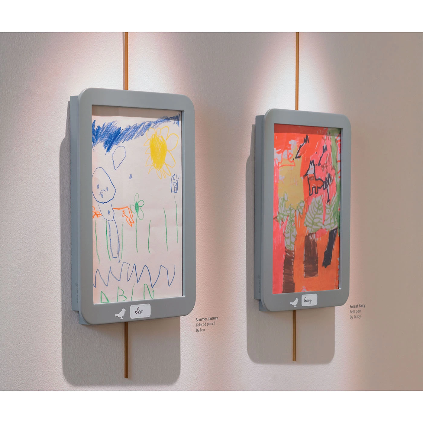 Una cornice personalizzabile con adesivi per conservare ed esporre i primi disegni del tuo bimbo.