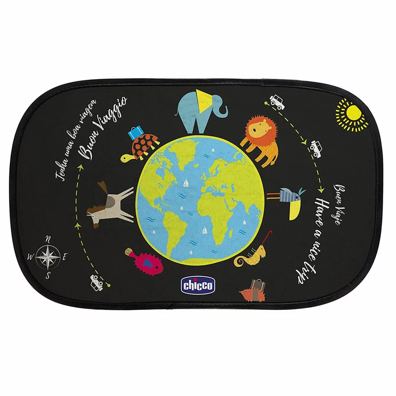 Utile e graziose, 2 Tendine Parasole di Chicco arredano la tua auto con stile! Sono due tendine con ventose da applicare al finestrino che proteggono il bambino dai raggi solari per tutto il viaggio. Le Tendine Parasole sono decorate con simpatici animaletti e scritte!