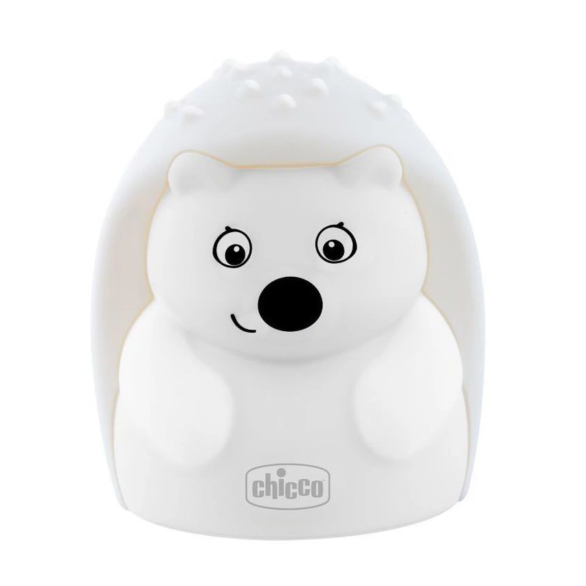 Realizzata in materiale morbido, la lampada da notte Riccio di Chicco può essere abbracciata e coccolata anche dai più piccoli.