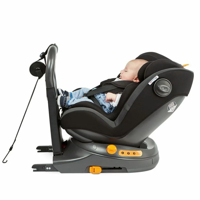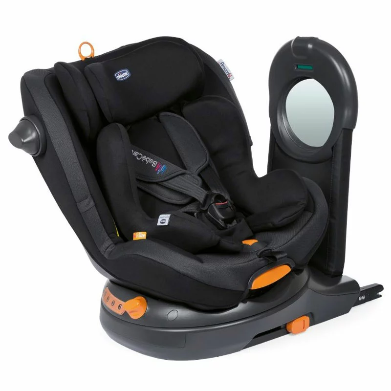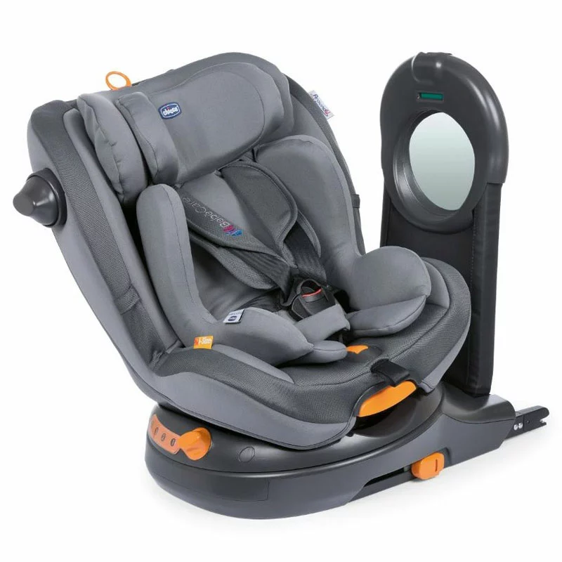 Chicco Seggiolino Auto AroundU I-Size con Base Girevole e Sistema Antiabbandono BebèCare segue la normativa ECE R129 i-Size ed è omologato per il trasporto dei bambini dalla nascita fino ai 4 anni circa. É in grado di adeguare schienale, seduta e poggiatesta alla crescita del bambino, inoltre grazie alla base girevole integrata puoi roteare la direzione del seggiolino di 90° gradi e posizionarla verso il lato della portiera, facilitando così il posizionamento del neonato. Si orienta in entrambi i sensi di marcia e l’installazione con sistema Isofix + Top Theter prevede due modalità possibili, nel dettaglio: