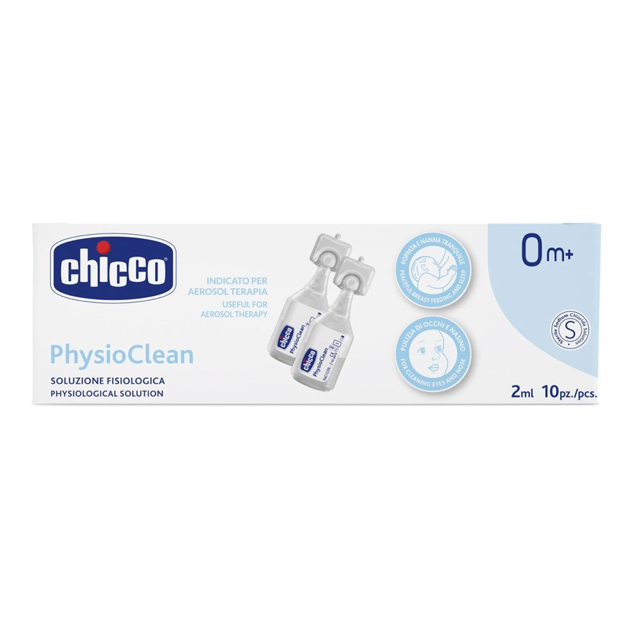 Chicco Soluzione Fisiologica Physioclean 10 x 2 ml. La soluzione fisiologica sterile PhysioClean è un valido aiuto per detergere ed idratare anche quotidianamente il nasino dei più piccoli, favorendo l’eliminazione del muco in eccesso.