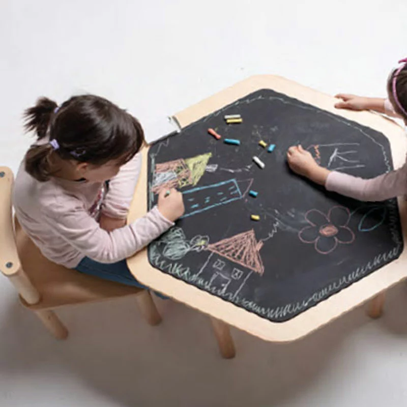 Piano Lavagna per Tavolo Moovie di Cuoricini si abbina al per ottenere un area gioco creativa e versatile, in cui far sbizzarrire il tuo bambino! É una lavagna nera su cui scrivere, disegnare, pasticciare con gessetti bianchi o colorati, perfetta per far intrattenere e stimolare il tuo bambino. É intercambiabile con il Piano Gioco di Cuoricini, così puoi creare un tavolo sempre innovativo e stimolante!