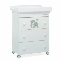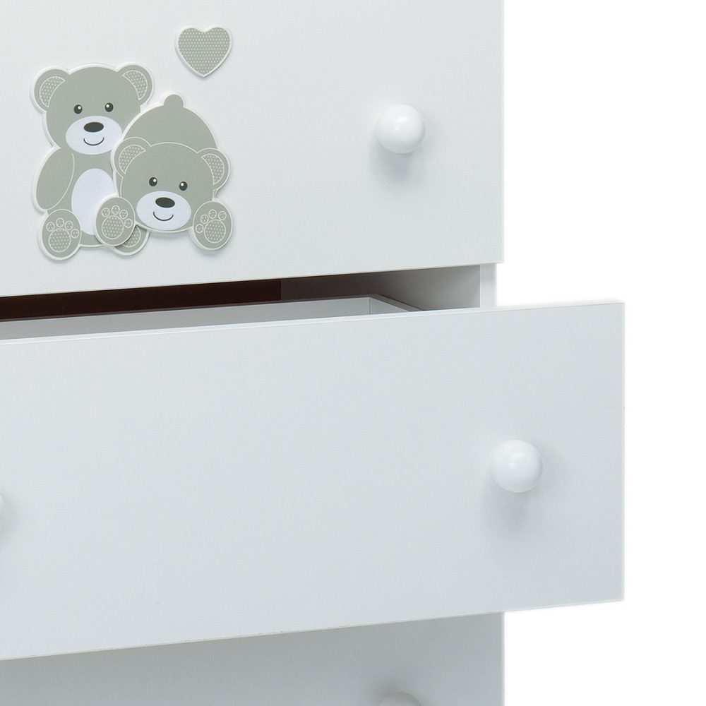 È caratterizzato da raffinate decorazioni sul cassetto superiore: due simpatici e teneri orsetti insieme a un cuoricino nello stesso tono di grigio.