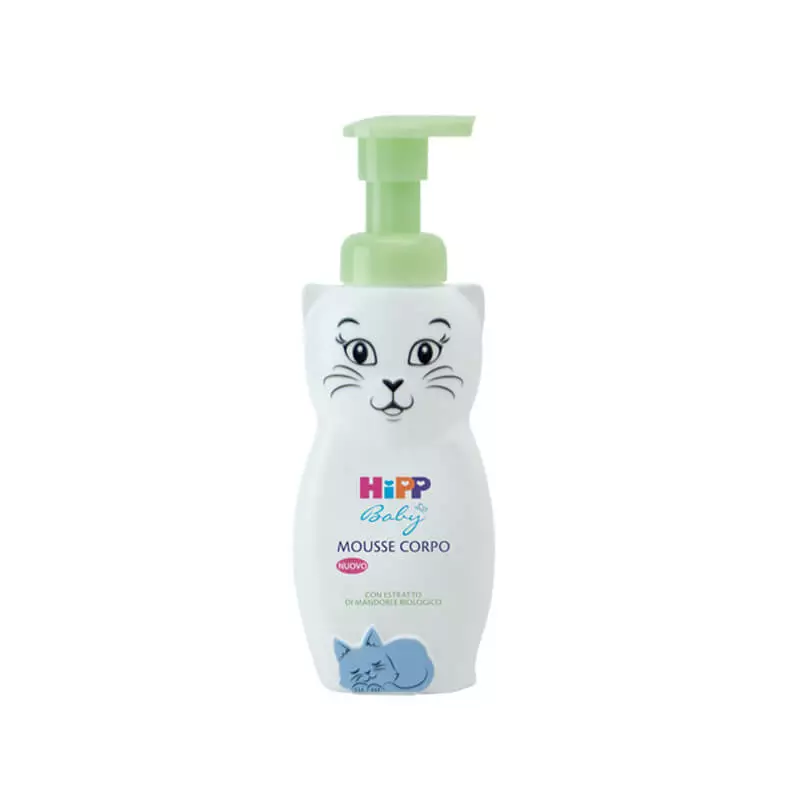La Mousse Corpo Gatto da 150 ml della Hipp è ideale per l’idratazione quotidiana della pelle del bambino. Dall’innovativa consistenza soffice e schiumosa, si assorbe rapidamente e non unge; a base di olio di mandorle biologico, nutre intensamente la pelle. La Mousse Corpo è dotata di un pratico dispenser ed è facile da applicare anche per i più piccoli. Formula sviluppata per minimizzare il rischio di allergie, senza profumi allergizzanti, senza oli eterici, senza parabeni, senza emulsionanti PEG, senza siliconi e Vegan: priva di ingredienti di origine animale.