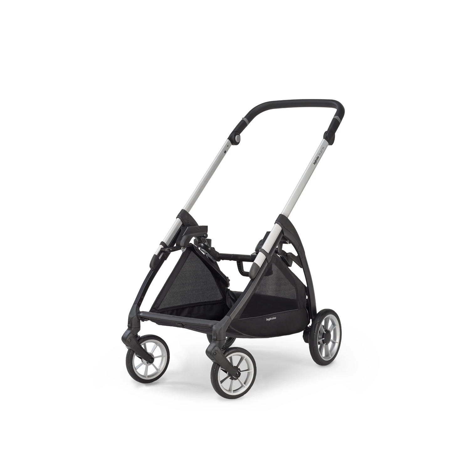 Inglesina Telaio Passeggino Electa Leggero con Chiusura Compatta è leggero (pesa solo 5,5 kg!), compatto e si apre e si chiude con una sola mano! Il Telaio Electa è largo appena 50 cm e consente di passare anche attraverso gli spazi più stretti, è dotato di ampie ruote (215 mm diametro delle posteriori e 175 mm le anteriori) con cuscinetti a sfera integrati che permettono al passeggino di muoversi fluidamente. Il maniglione regolabile si adatta all’altezza di ciascun genitore. Infine, il telaio del Passeggino Electa è provvisto di tasca integrata e cestino portaoggetti con profilo in materiale rifrangente che aumenta la visibilità durante le passeggiate notturne.