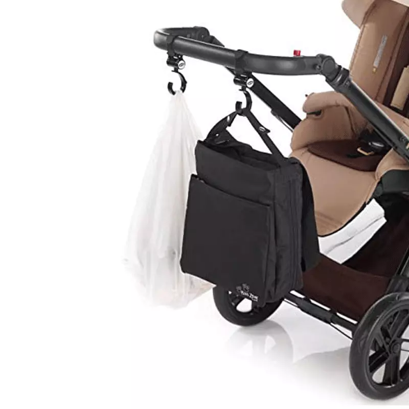 Jané Gancio Appendino Universale per Passeggino Culla Multiuso di Jané ti permette di appendere qualsiasi cosa, dalla borsa alla busta della spesa, alla tua culla, passeggino, ovetto…! Si può posizionare ovunque grazie ai suoi resistenti velcri di trattenuta, ha un gancio girevole e ha una portata massima di 10 kg. Quando agganciato al passeggino si consiglia di non superare i 3 kg perché si rischia di rovesciarlo.