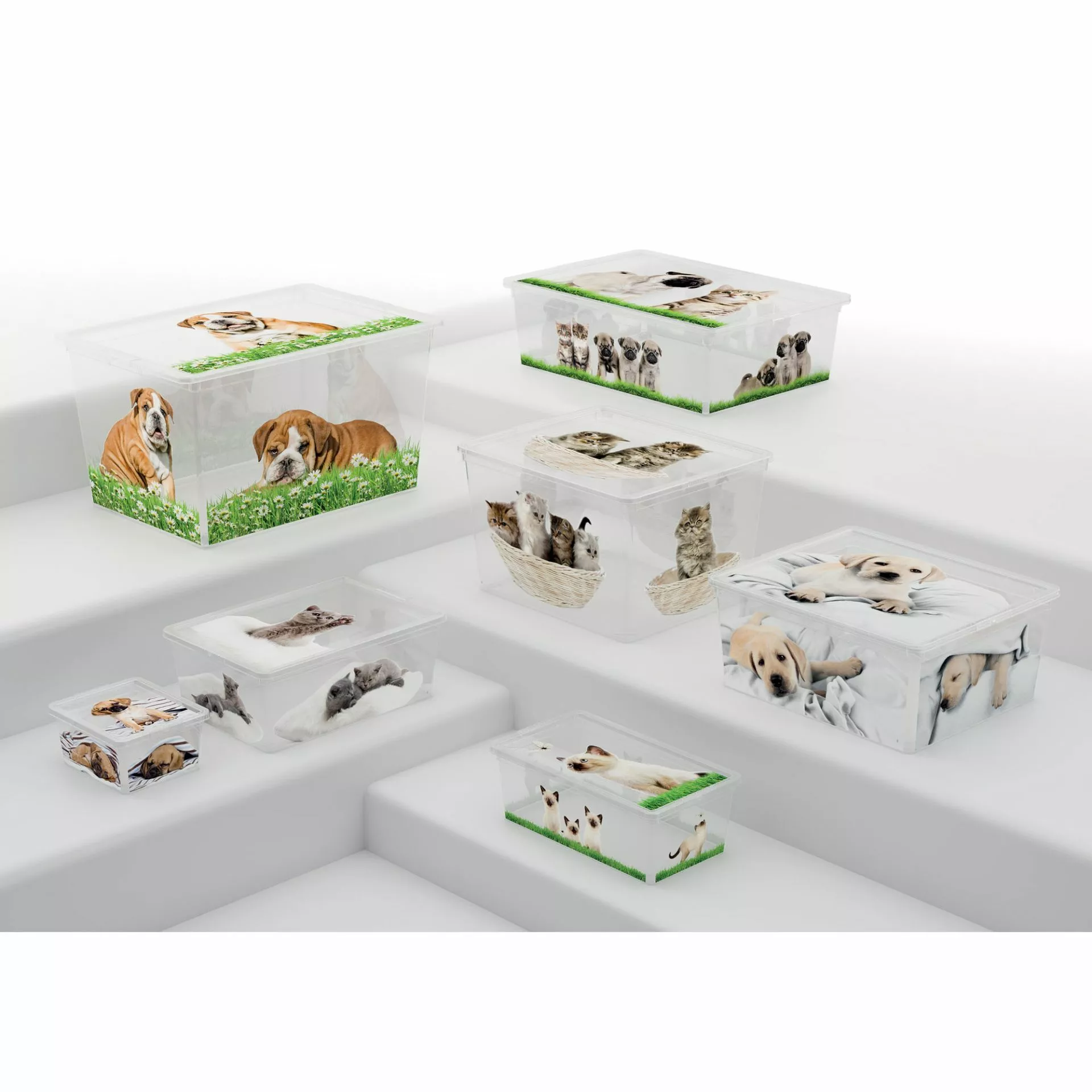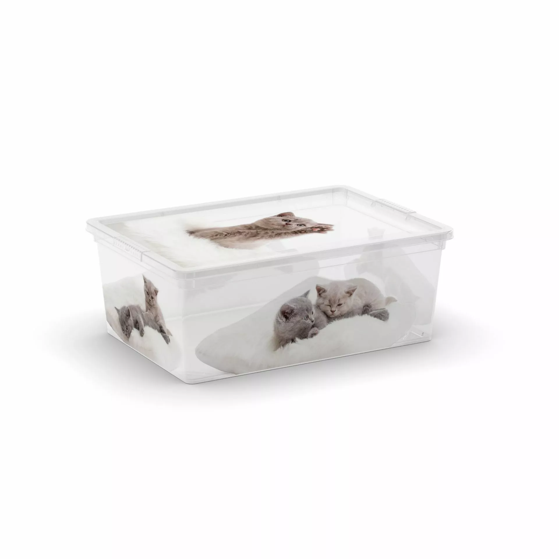 - Contenitore in plastica multiuso dotato di coperchio, con film decorativo