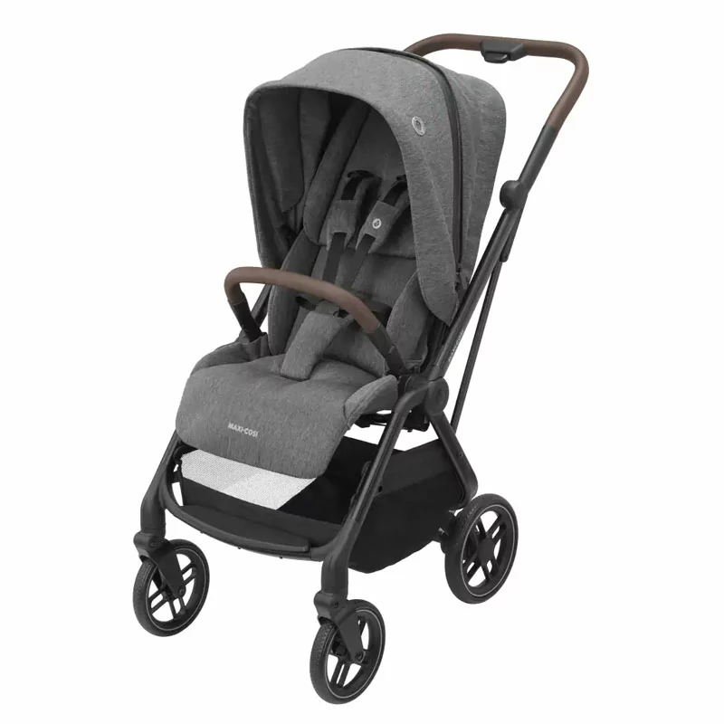 Maxi-Cosi Passeggino Leona2 con Seduta Reversibile – max 22kg ha lo schienale regolabile e reclinabile, seduta reversibile fronte strada e fronte genitore ed è adatto per seguire il bambino nella crescita fino ai 22 kg. Il Passeggino Leona2 è dotato di capottina con visiera parasole a scomparsa mentre la barra di protezione è apribile a cancelletto e può essere sganciata da un solo lato e riposta lateralmente. Il telaio del Passeggino Leona2 è provvisto di tecnologia Memory Button che facilita lo sgancio, è integrato di maniglione di spinta in pelle vegana, inoltre nella parte inferiore è disposto un capiente cesto portaoggetti di portata max 5 kg. Il Passeggino Leona2 è adattabile a Duo o Trio ed è compatibile con la Navicella Oria e Navicella Jade i-Size Maxi-Cosi (adattatori inclusi) e con i seggiolini auto Pebble 360, Coral 360, Marble, CabrioFix iSize Maxi-Cosi.