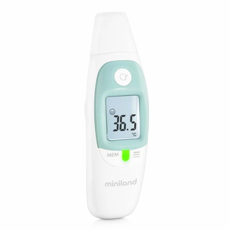 Il Termometro Thermosense di Miniland ha un sensore a infrarossi che permette di misurare la temperatura corporea attraverso l’orecchio e la fronte. Può essere utilizzato per monitorare la temperatura ambientale o quella di liquidi e oggetti, ad esempio del biberon, del cibo o dell’acqua del bagnetto.