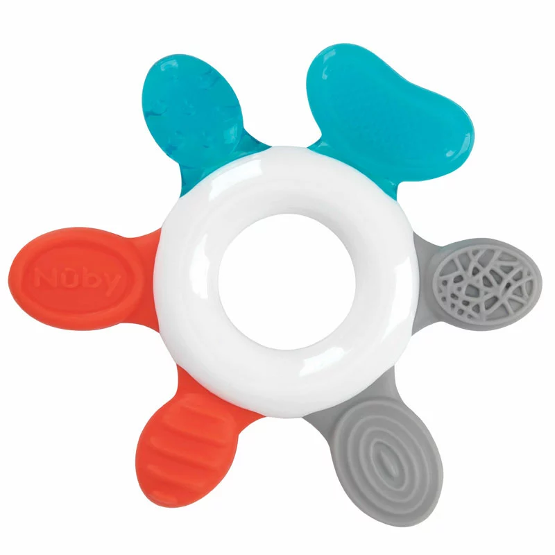 Nuby Massaggiagengive Multi-Comfort, 3m+ aiuta il bambino nella dentizione grazie alle diverse forme e consistenze e stimola la fuoriuscita dei primi denti da latte. Agevola il bambino nel passaggio da allattamento a svezzamento. Il Massaggiagengive è facile da impugnare ed è arricchito da graziosi forme e colori.