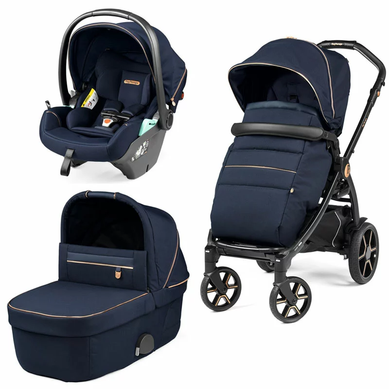Peg Perego Trio Book con Passeggino, Culla Gran Pagoda e Seggiolino Auto Primo Viaggio Lounge i-Size – Blue Shine segue il tuo bambino nella crescita dalla nascita fino ai 4 anni. Comprende Telaio e Passeggino Book, Navicella Gran Pagoda con ampi inserti di ventilazione e Seggiolino Auto Primo Viaggio Lounge iSize, per bambini dalla nascita ai 15 mesi.