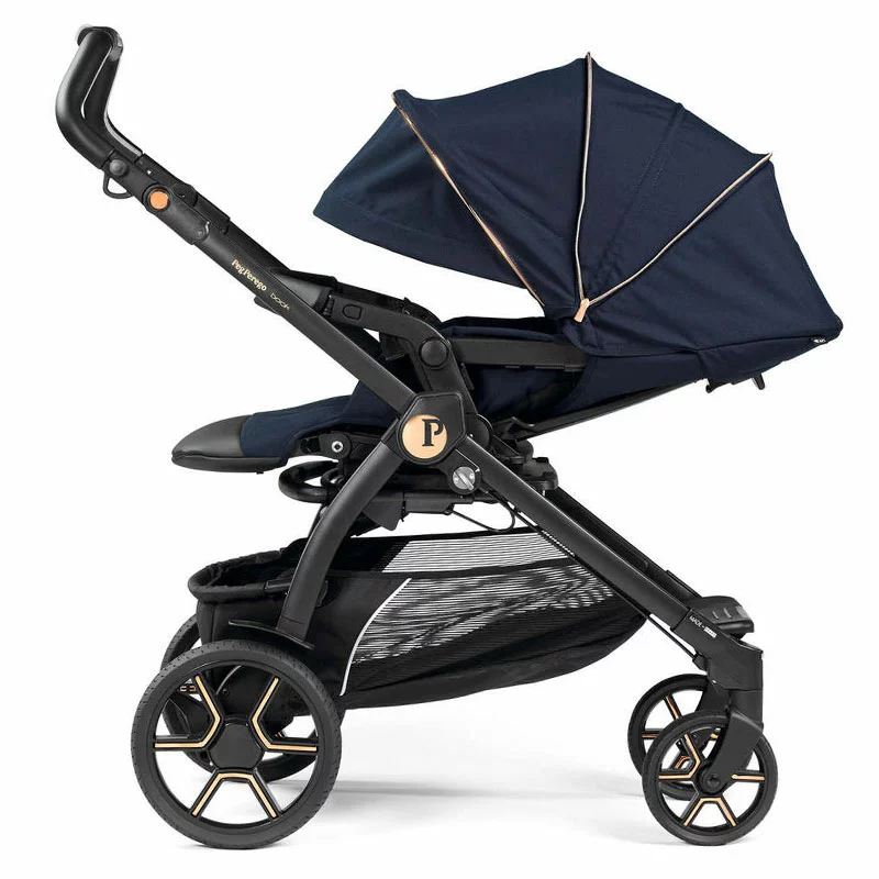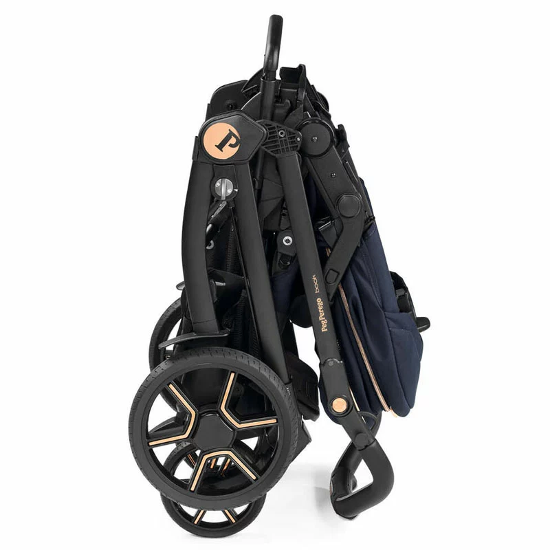 Peg Perego Passeggino Compatto Book è dotato di seduta reversibile fronte genitore/fronte strada con possibilità di chiudere il passeggino in entrambi le direzioni della seduta. Il Passeggino Book trasporta i bambini da 0 a 22 kg e ha lo schienale reclinabile in più posizioni fino a quella completamente distesa, il poggia gambe regolabile, il coprigambe imbottito, il maniglione di trasporto regolabile in altezza e la barra di protezione apribile a cancelletto in tessuto ecopelle. La capottina UPF 50+ protegge efficacemente dal sole ed è integrata di visiera parasole e gancio per appendere peluche o giochini. Le ruote con pneumatici scanalati hanno cuscinetti a sfera e sospensioni su tutte e 4 le ruote. Il passeggino Book ha il telaio largo appena 51 cm, questa caratteristica lo rende ideale per i genitori che hanno un bagagliaio della macchina molto compatto o che utilizzano quotidianamente l’ascensore.
